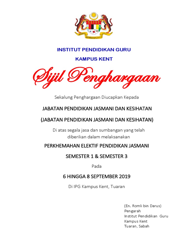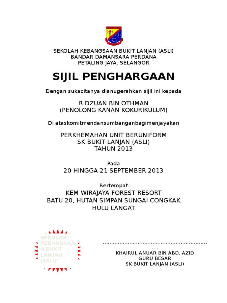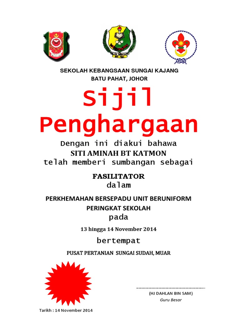 Sijil Penghargaan Perkhemahan Pdf