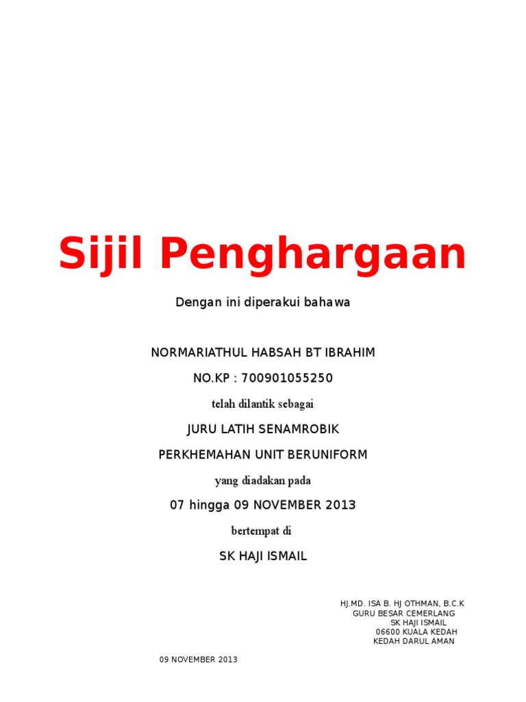 Contoh Sijil Pencapaian Dan Penghargaan Pdf